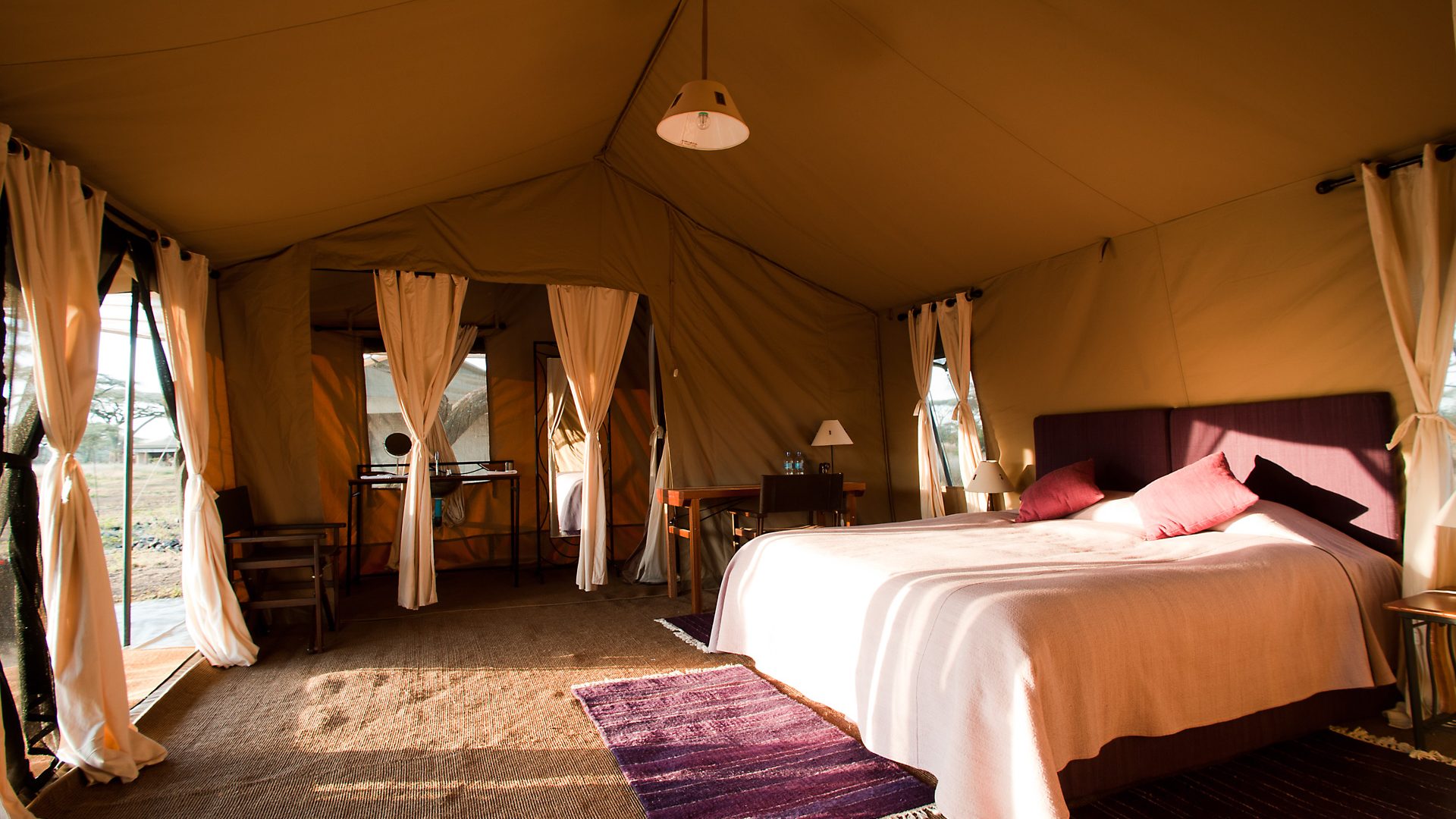 Ubuntu Camp is a small, mobile camp in the Serengeti National Park in Tanzania, which moves three times a year to optimise the chance of witnessing the great wildebeest migration.