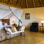 The spacious rooms all come with views of the garden and African-style décor. They are also furnished with a seating area and desk. The en suite bathroom includes a hairdryer and complimentary toiletries.