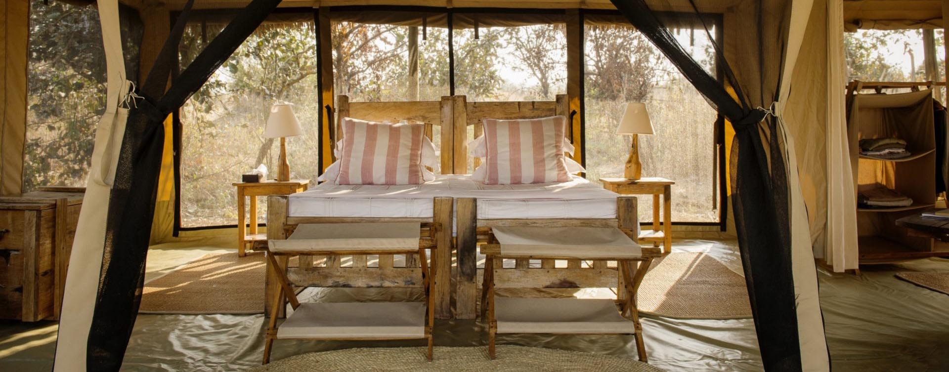 Nomad Kigelia Camp consists of six luxurious, spacious tents, each with a bathroom with an open-air shower.