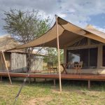 Sand Rivers Selous has eight stone cottages with thatched roof, all open at the front and on elevated wooden platforms overlooking the river.